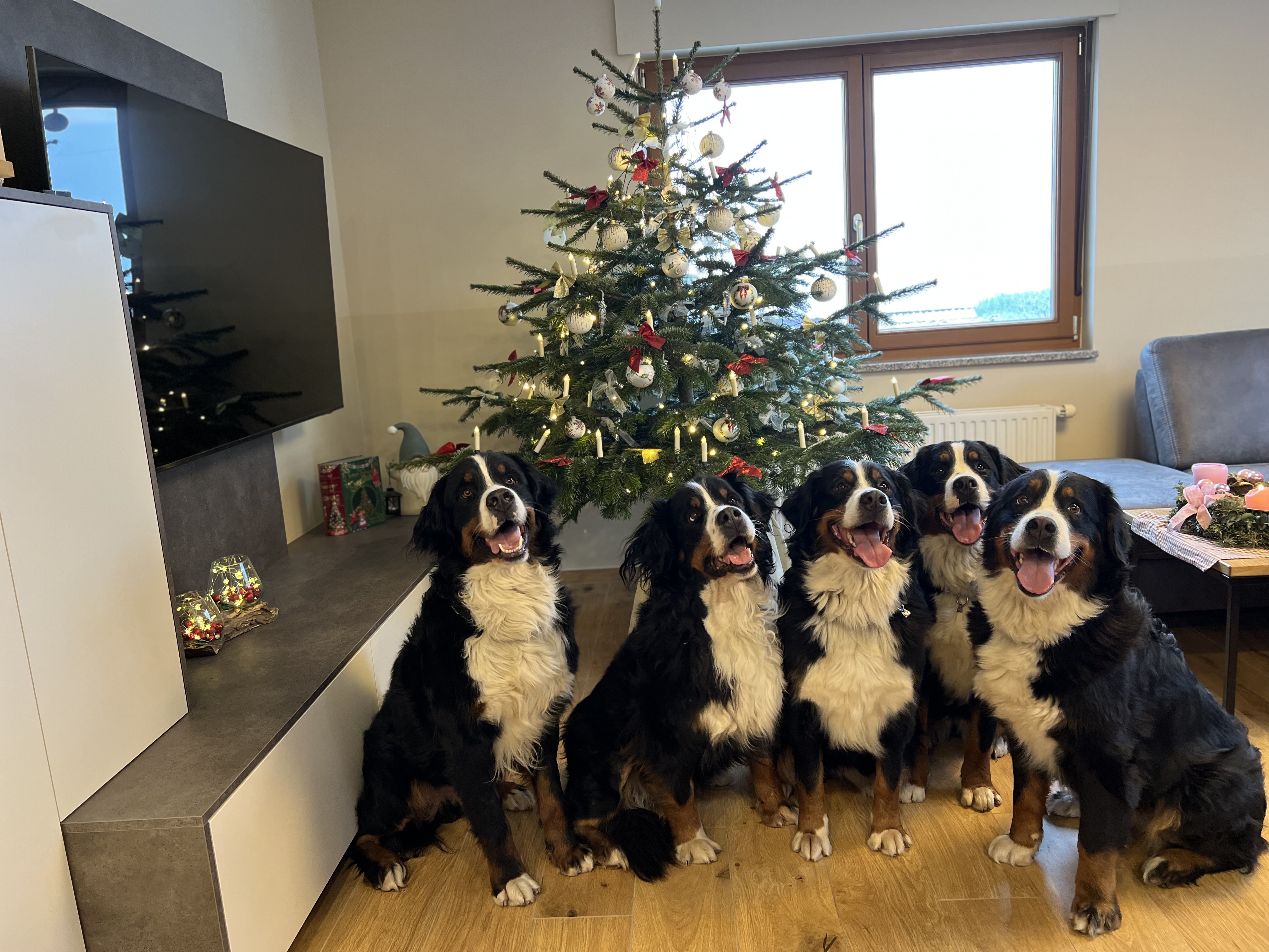 Auch wenn heuer vier Kerzen an unserem Adventskranz brennen, sitzen in diesem Jahr fünf Berner unter unserem Christbaum.